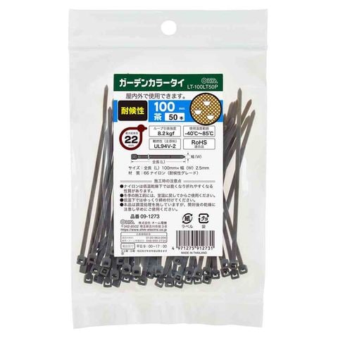 オーム電機 ガーデンカラータイ 耐候性 100mm 茶 09-1273 50本入