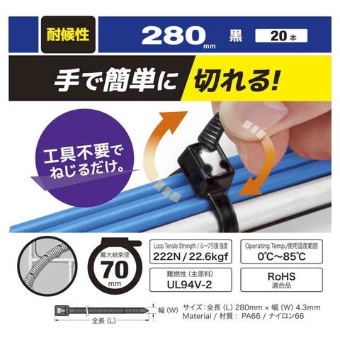 結束バンド、手で切れる、電線、結束、配線、耐候仕様、RoHS適合品