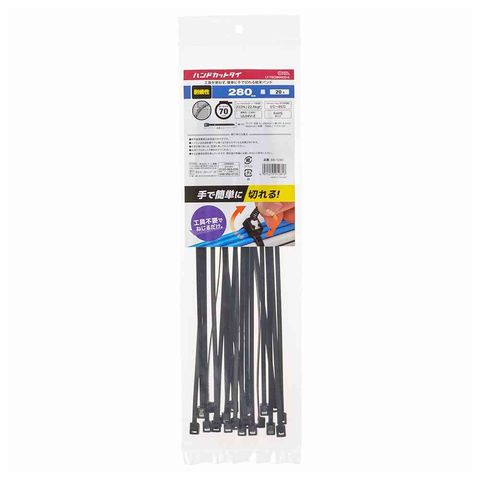 オーム電機 ハンドカットタイ 耐候性 280mm 黒 09-1281 20本入