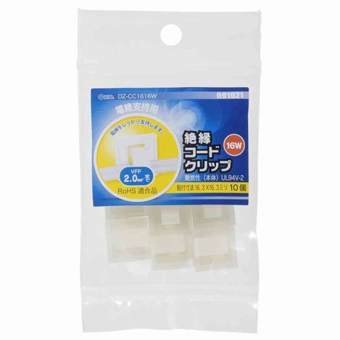 オーム電機 絶縁コードクリップ 16W ホワイト 09-1921 10個入