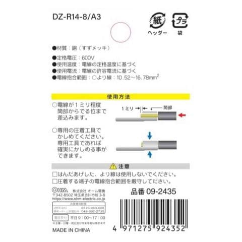 オーム電機 丸型端子 R14-8 DZ-R14-8/A3 3個入
