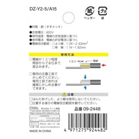 オーム電機 Y型端子 Y2-5 DZ-Y2-5/A15 15個入