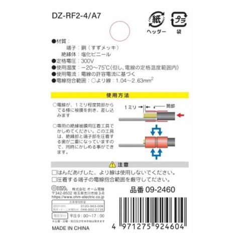 オーム電機 絶縁丸型端子 RF-2-4 DZ-RF2-4/A7 7個入
