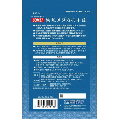 にんにく配合で嗜好性アップ、抗菌、殺菌効果により強く元気なメダカの育成効果。
