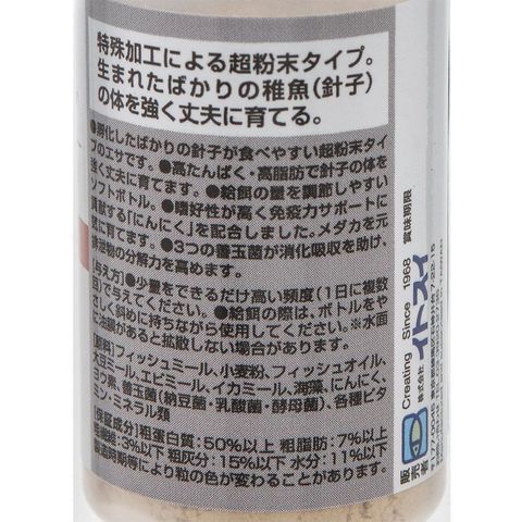 嗜好性が高く免疫力サポートに貢献する「にんにく」を配合しました。針子を元気に育てます。