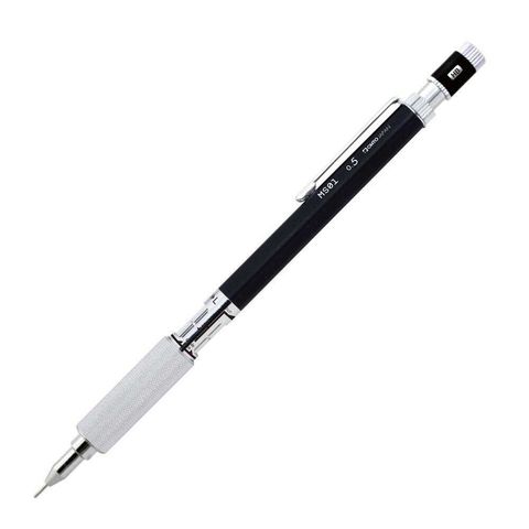 ガイドパイプ収納機能やワンノックでの出芯調節機能が付いた高機能シャープペン。 ローレットグリップでしっかり握れます。