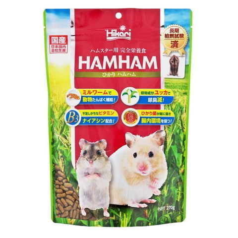 ペットフード、ひかり、Hikari、ハムスター、ドワーフ、ゴールデン、ひかり菌、飼料、エサ、ミルワーム、ユッカ、ビタミンC、ナイアシン、排泄物の臭いを抑える