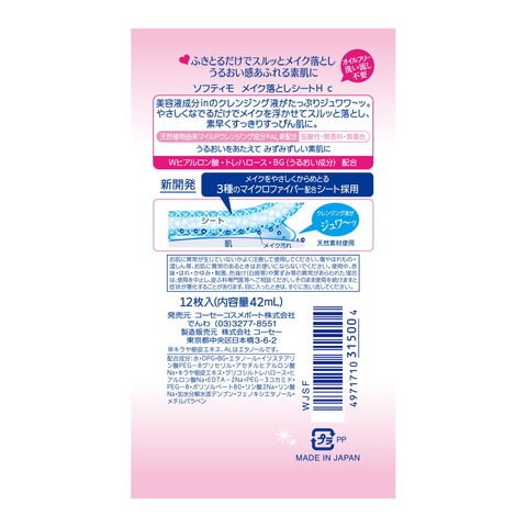 コーセーコスメポート ソフティモ メイク落としシートN Wヒアルロン酸配合 携帯 12枚入
