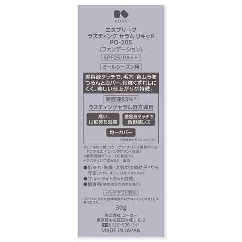 コーセー エスプリーク ラスティングセラム リキッド #205 ピンクオークル 30g