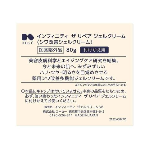 【医薬部外品】コーセー インフィニティ ジェルクリーム W 付けかえ用 80g