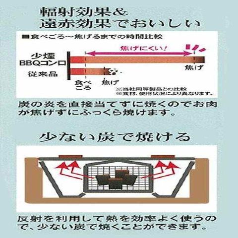 商品説明煙の発生を約90%カット!!・直接炭に油が落ちない新構造。煙の原因になる油が燃えないので煙を抑えることができます。