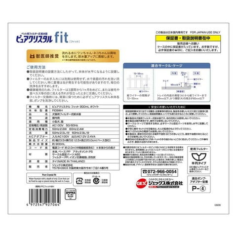 本製品は犬猫用フィルター式給水器です。他の目的には使用しないでください。