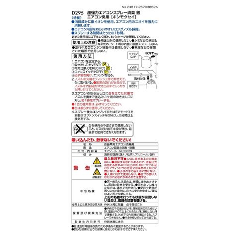カーメイト 超強力エアコンスプレー消臭 銀 キンモクセイ D295 エアゾール・NET90ml