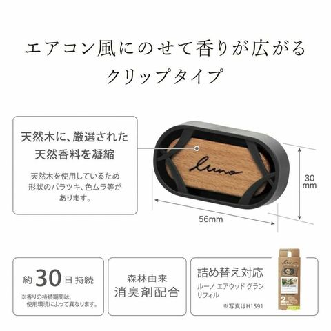 芳香剤 車 エアコン シーサイドシトラス H1583 ルーノ エアウッド グラン シーサイドシトラス エアコン取付 車用芳香剤 消臭剤配合 天然香料 luno