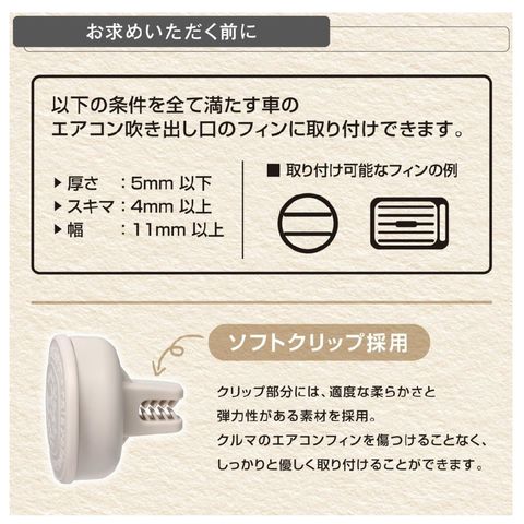クルマのエアコンフィンを傷つけることなく、しっかりと優しく取り付けることができます。