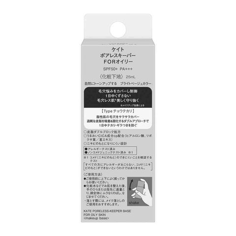 ケイト、ポアレスキーパー、FORオイリー、ケイト下地、ケイト化粧下地、毛穴レス肌、脂性肌、サラサラカバー、皮脂を吸着、テカリ防止