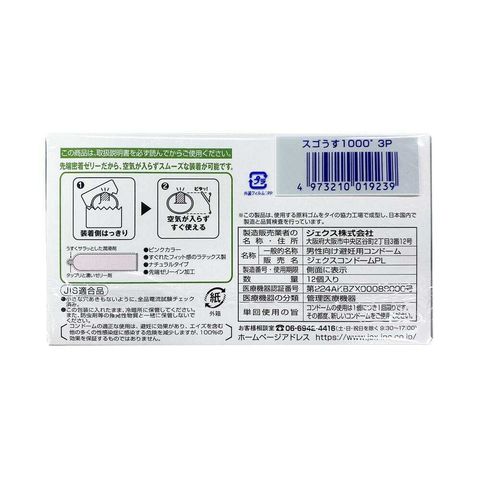 コンドーム、避妊、ゴム、スキン、すごうす、スゴうす、3個、セット、パック、ゼリー、ゼリー入り、ラテックス