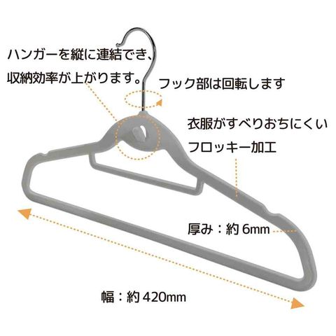 フック、回転、フロッキー加工、滑らない、収納、クローゼット、洋服、シャツ、ワイシャツ、GY