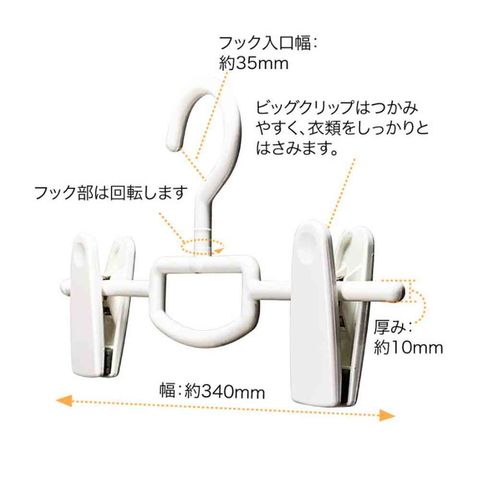 シンコハンガー モノクローゼット スカートハンガービッグクリップ ホワイト