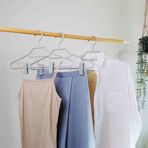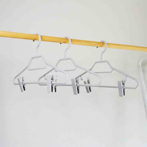 洋服の襟をしっかりキープする形状クリップでボトムも収納できる