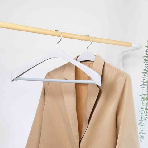 滑り止めのストップバーは、スラックスなどを掛けた際にずり落ちを防ぎます。