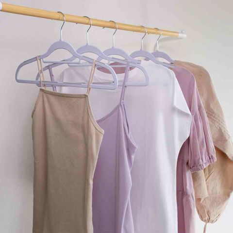 ラバー加工で洋服が滑り落ちにくいスリムなハンガーで収納効率が良い