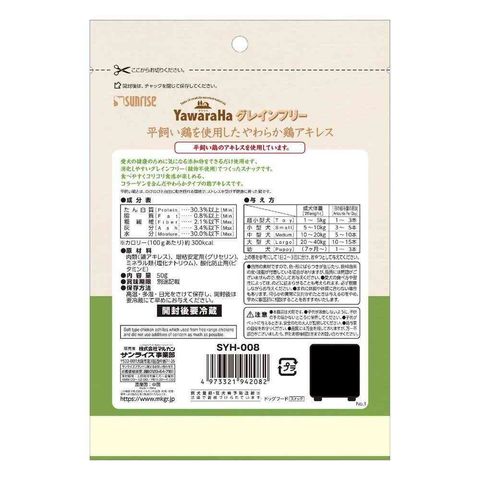 マルカン サンライズ ヤワラハ グレインフリー 平飼い鶏を使用したやわらか 鶏アキレス 50g