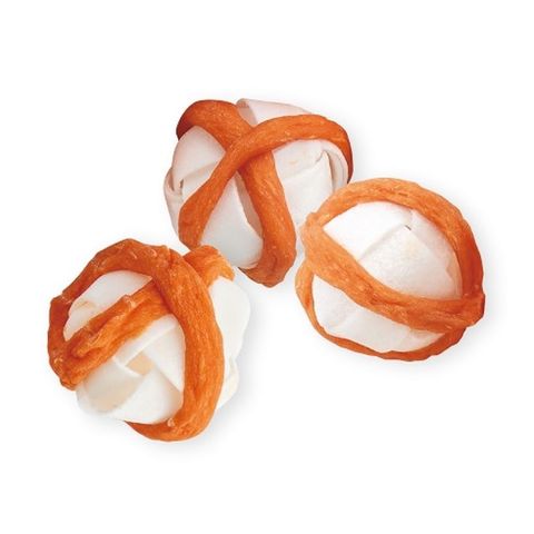 鶏ササミを天然牛皮に塗り付け、丁寧にボールの形に編んでいるので、最後まで飽きずに食べられます。