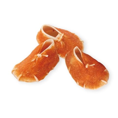 鶏ササミを天然牛皮に塗り付け、丁寧にくつの形に編んでいるので、最後まで飽きずに食べられます。