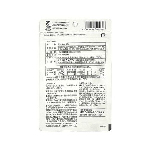 1粒中 (1)亜鉛15mg (2)銅0,9mg (3)クロム60μg (4)セレン50μg