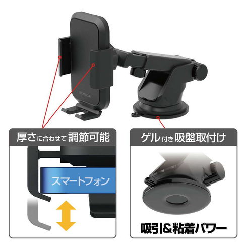 ●ゲル付き吸盤でダッシュボードにしっかり取付けできます。
