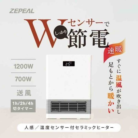 人感/温度センサー付セラミックヒーター ゼピール 切り忘れ防止機能 ホワイト ZCT-12TMB 1台