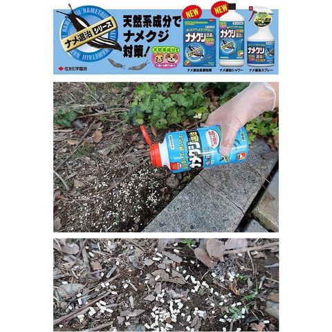 ナメクジ、カタツムリが出そうな場所に均一に散布する。