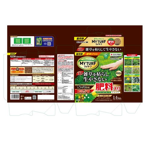 芝生にやさしく、芝生の中に生えた雑草を根まで枯らし、肥料が芝生を健やかに育てます。