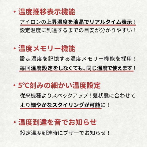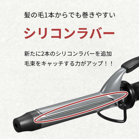 アイロンバレル部に2本のシリコンラバーを新たに採用。キャッチ力がアップし、髪の毛1本からでも巻きやすくなりました。