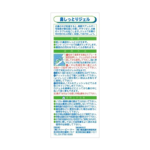 ・鼻の粘膜を長時間保湿できる鼻の保湿ジェル ・ミント、メントールの香りでスッキリ ・鼻を乾燥から守って異物の付着を防止 ・ジェル専用スプレーで使い方簡単、衛生的
