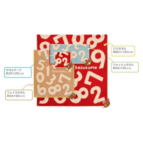 かずくま、ウォッシュタオル、ハンドタオル、綿100%、かわいい、カラフル