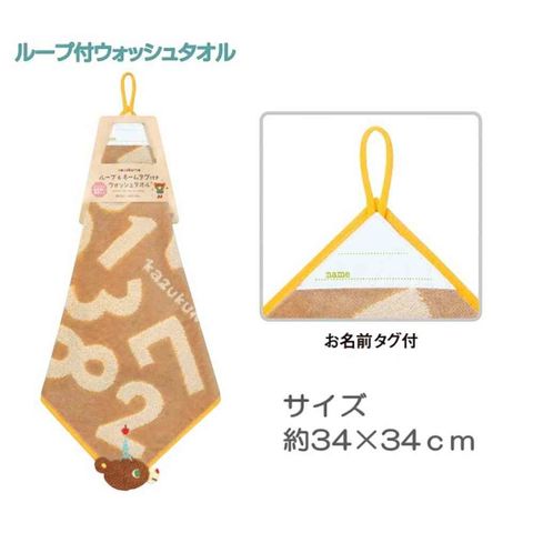 かずくま、ハンドタオル、ループ付、綿100%、かわいい、カラフル