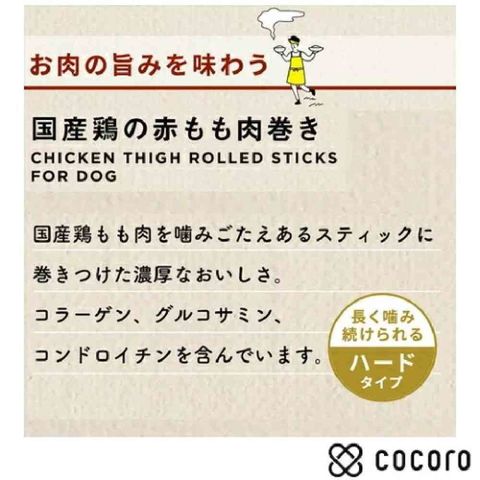 保存料、着色料、発色剤、酸化防止剤を使わずに作りました。魚と鶏の軟骨が入った噛みごたえあるスティックに、濃厚なおいしさの赤いもも肉を巻きつけました。軟骨形成成分が、関節の健康を維持します。