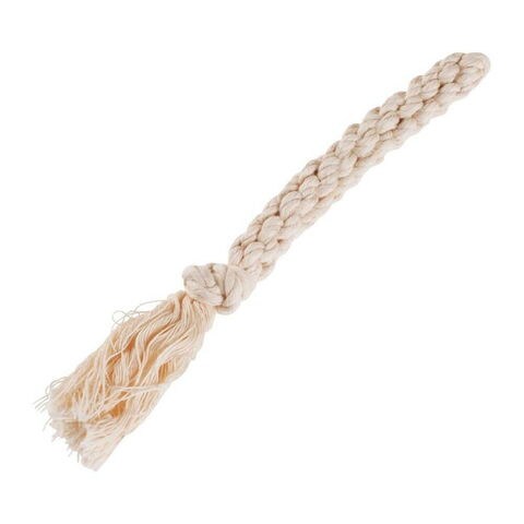 糸をぎゅっと縒ったコットンロープ玩具とちがい、編み目に歯が根元までよく食い込みます。
