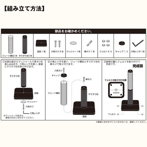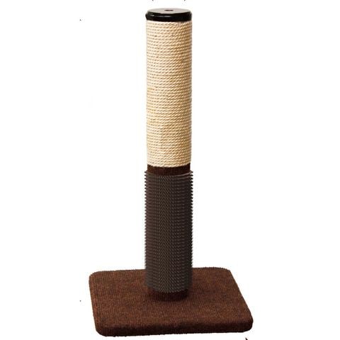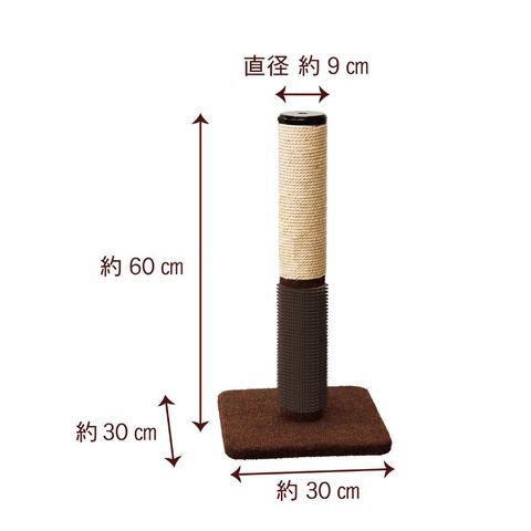 爪が引っかかりやすくしっかり磨けるジュート縄とやさしい磨き心地のカーペットの2種類の爪とぎ仕様。かゆい所に手が届くねこすりブラシで、柱ですりすりできる仕様。「すりすり」と「ガリガリ」が1つのポールでできます。