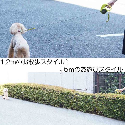 商品説明・最大1.2mの伸縮と最大5mの伸縮が、スイッチ一つで切替る事ができる伸縮リード。