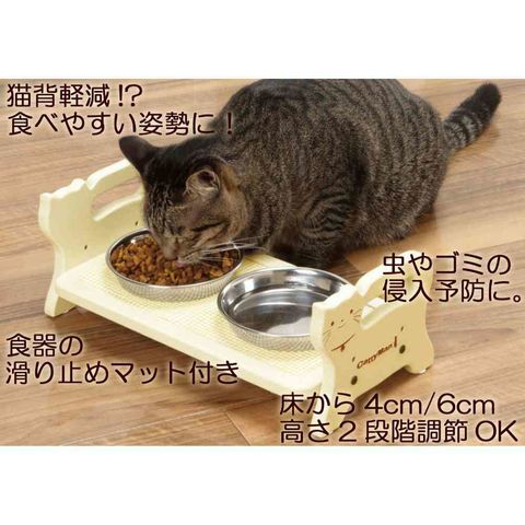 ・ペットの体型に合わせて高さが2段階(床から4、6cm)に調節できる。テーブル面の有効サイズは14×28cm。