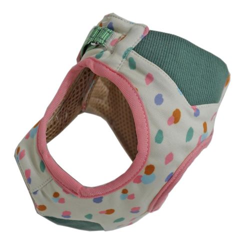 商品説明わんちゃんの体をやさしく包み込む、ソフトタイプのおしゃれなハーネス。胸元の伸縮生地で引張時の衝撃を吸収、内側はクッション性のあるメッシュ生地でムレにくく、やさしい肌ざわり。反射テープが夜道で光って安心・安全です。お散歩の中で出会うワクワクをテーマにかわいい雑貨風テキスタイル柄をデザインに取り入れています。足を通して背中のマジックテープでぴったりフィットの簡単装着。余端はすっきり収納。