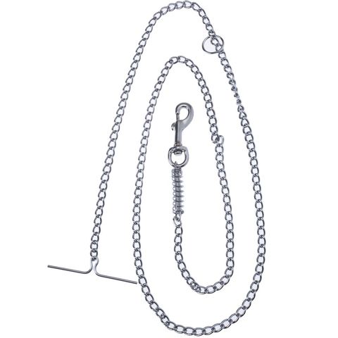 商品説明・体重20kgまでの中型犬用つなぎ止めチェーン。ひっぱりの衝撃を和らげるショックレス機構付。