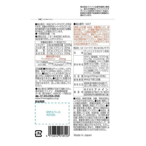 ◆【機能性表示食品】ファイン UV気にならないサプリ 20日分 20粒