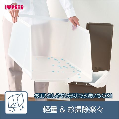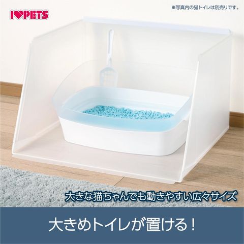 商品説明・猫砂の飛散をガード!トイレを置くだけですぐ使えます。前に飛散する猫砂もキャッチします。