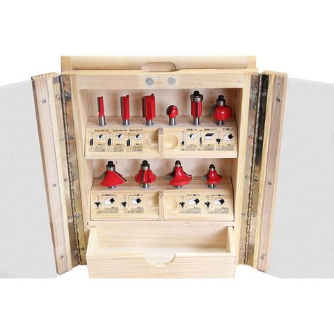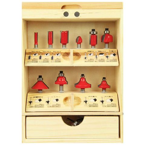 ●セット内容:ストレートビット3本(刃直径6・10・16mm)・U字溝ビット・目地払いビット・ギンナン面ビット2本・サジ面ビット・ヒョータン面ビット・45度面取りビット・収納ケース。
