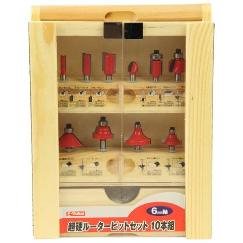 商品説明6mm軸の超硬ルータービットセット10本組です。