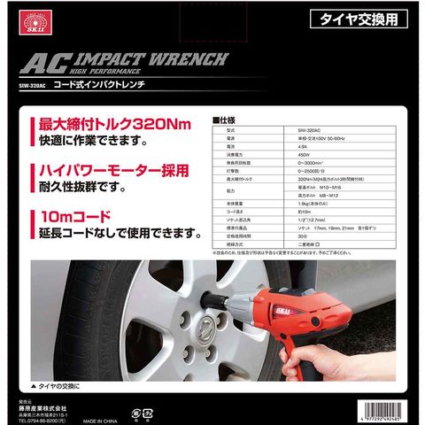 商品説明連続作業に適したコード式のインパクトレンチです。